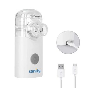 Máy xông khí dung siêu âm cầm tay Sanity sử dụng sóng siêu âm để phá vỡ cấu trúc dạng lỏng (dung dịch) của thuốc thành các hạt nhỏ li ti (kích thước chỉ 3.7µm), dễ dàng đi sâu vào hệ hô hấp, hỗ trợ điều trị bệnh tốt hơn.