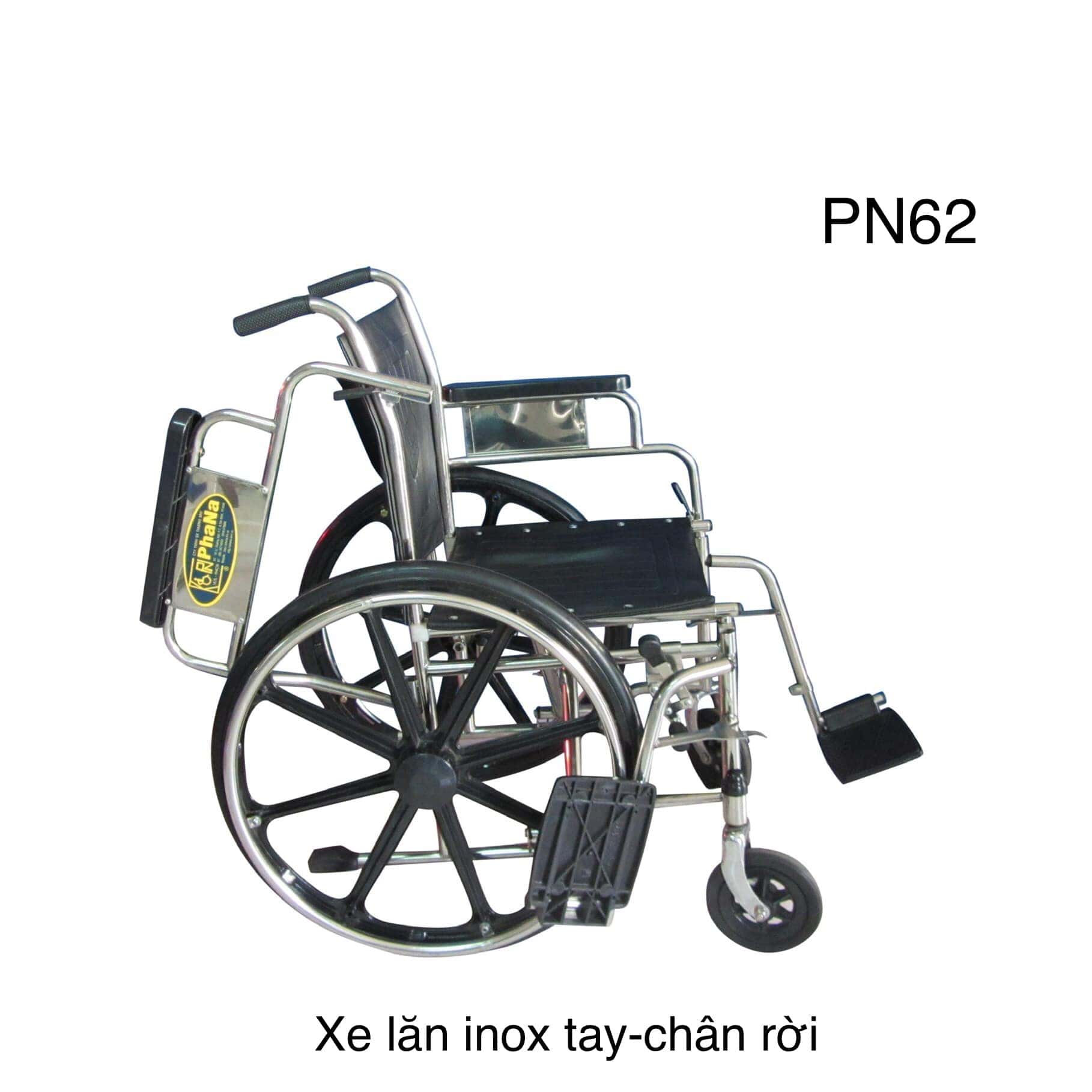 – Khung xe inox , bánh cao su đặt, mâm đúc, vành lăn Inox, nệm ngồi và tựa lưng simily may nhiều lớp