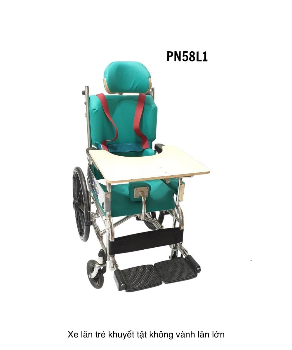 – Có bộ đai giữ thân mình (giữ bụng – ngực – vai) và 2 chân giúp trẻ ngồi vững vàng. Bộ đai có tăng – giảm băng dán phù hợp với từng dáng vóc của trẻ. (Chiều cao từ chỗ ngồi lên đai bụng: 12cm) (Chiều cao từ chỗ ngồi lên đai lưng: 42cm)